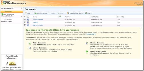 Today I've got my account activated. Office Live Workspace is the online place to store, access, and share documents. You can use it to distribute meeting notes, work together, or simply store documents as I do :) Registration is free although your request will be queued. I had to wait for activation for two week.